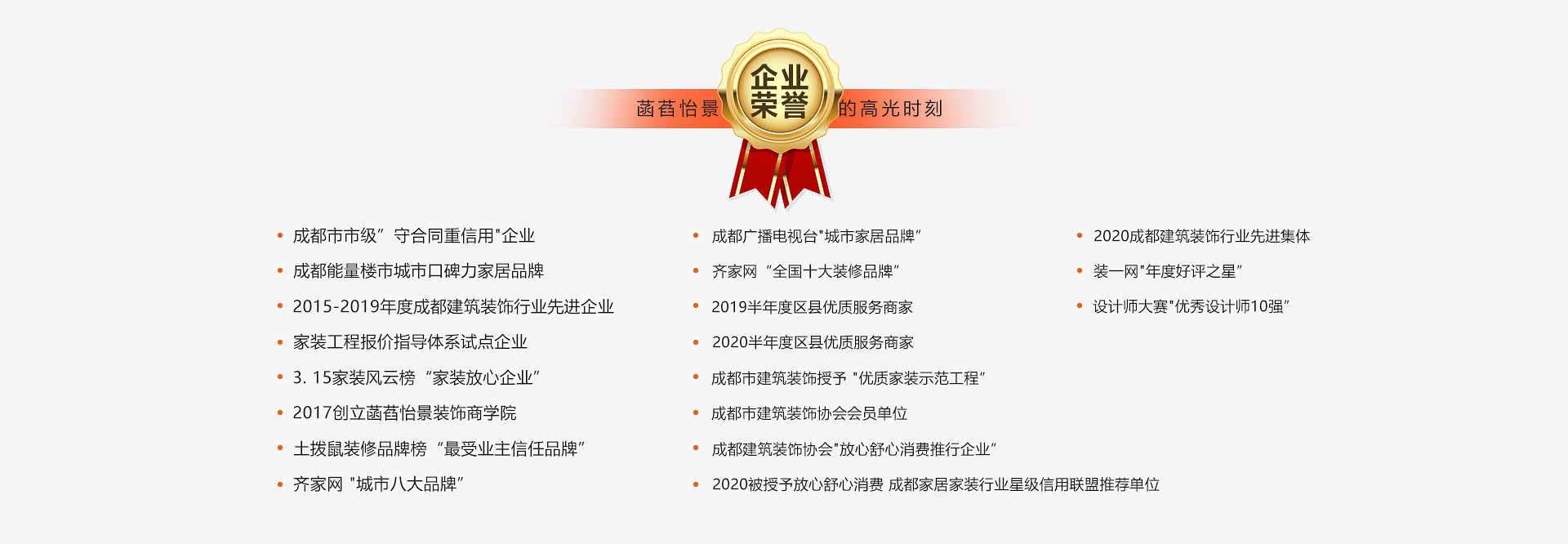 自2009年成立以來,菡萏怡景深耕裝飾裝修行業(yè)16年,一路成長,一路收獲,先后榮膺2013中國家居總評榜中國家裝整裝領(lǐng)導(dǎo)品牌、2014榜樣中國·傳媒大獎(jiǎng)魯班金獎(jiǎng)、2018年誠信典范十佳單位、2021年成都放心舒心消費(fèi)服務(wù)試點(diǎn)企業(yè)等20項(xiàng)榮譽(yù)。