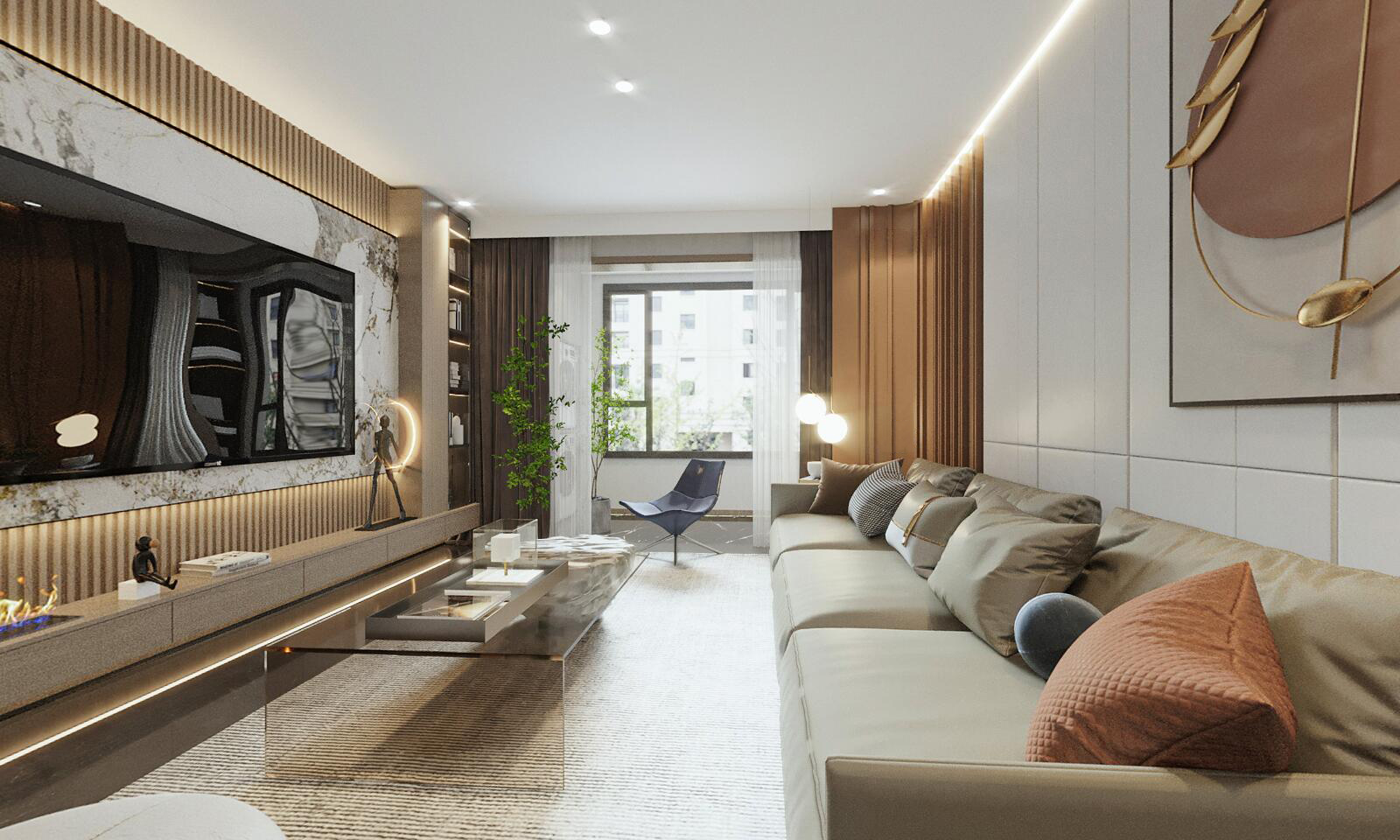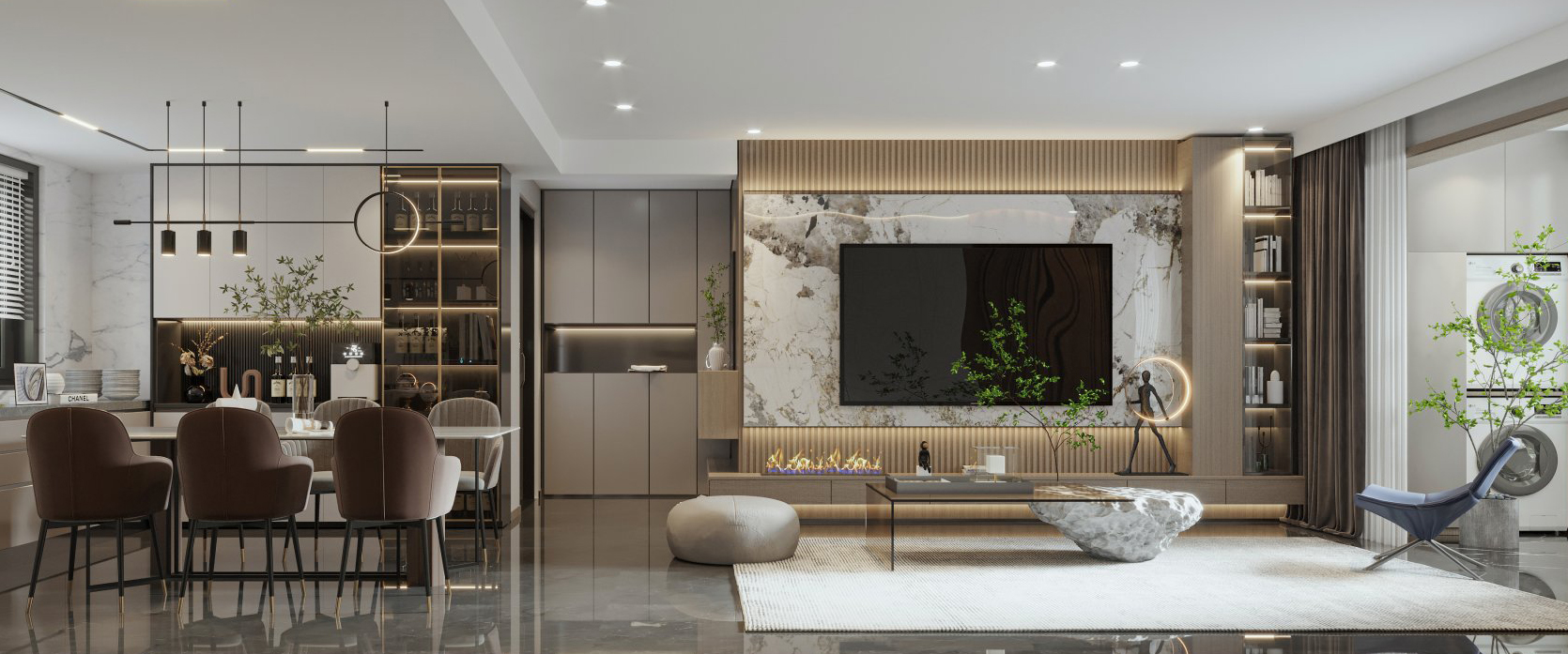 現(xiàn)代輕奢風(fēng),空間中加入少許的金屬與石材搭配設(shè)計(jì)!